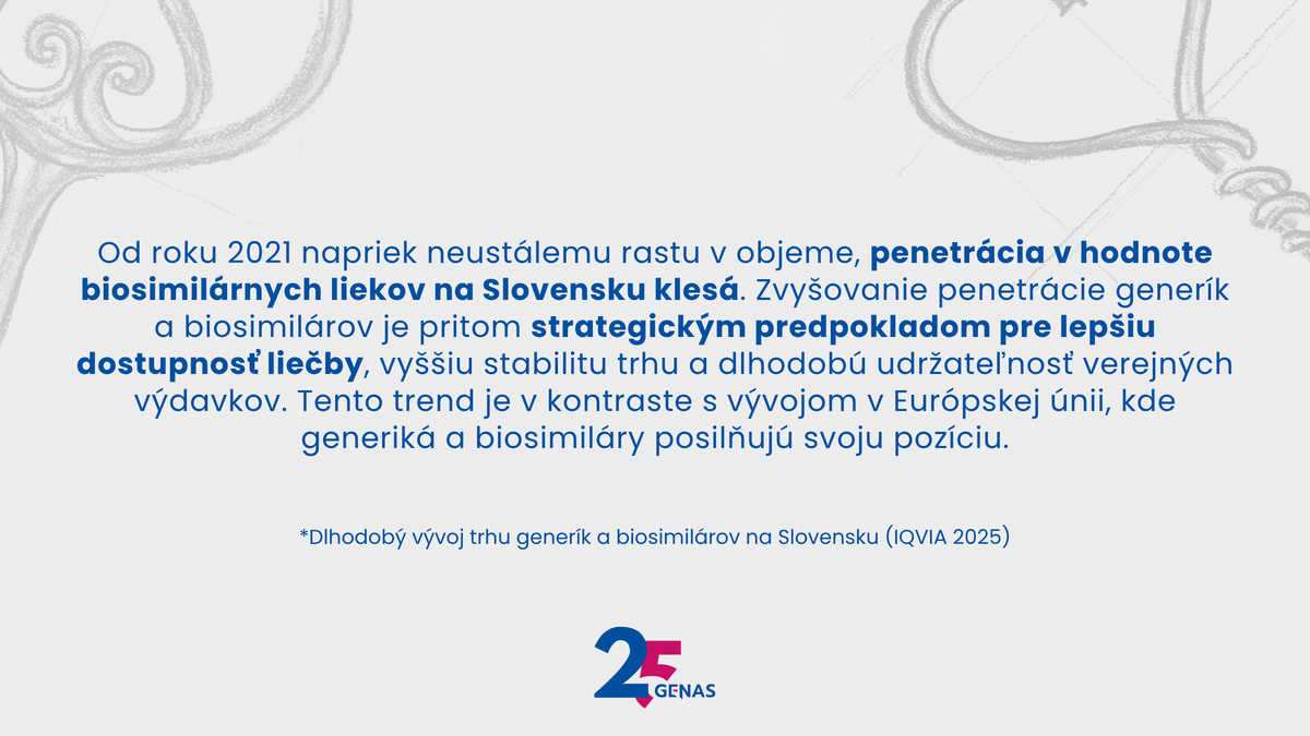 Vďaka generickým liekom je možné odliečiť dvojnásobné množstvo pacientov bez negatívneho dopadu na náklady vynaložené na lieky zo zdrojov verejného zdravotníctva.
